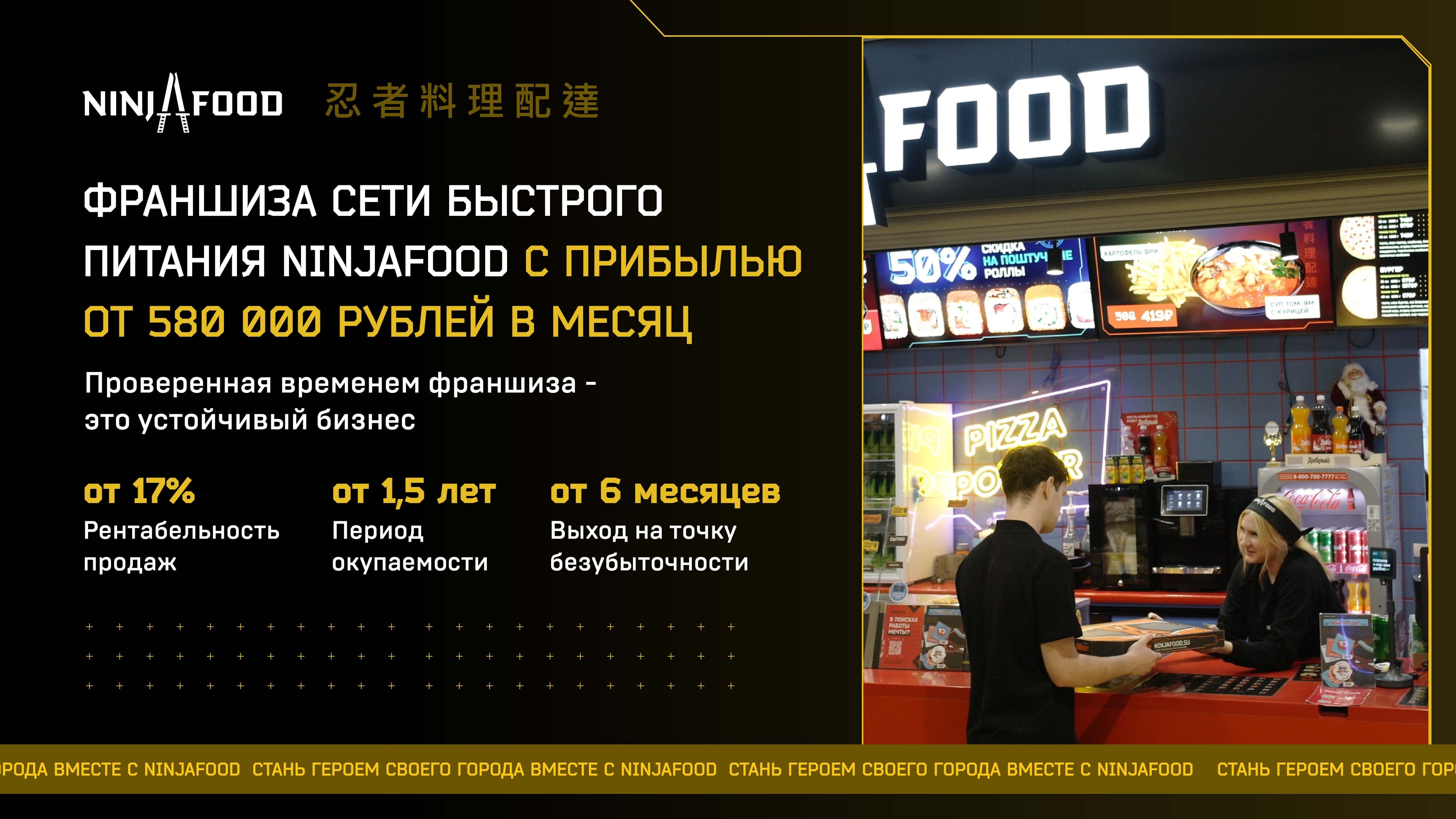 Зарабатывай от 500 000₽ в месяц с франшизой NinjaFood
